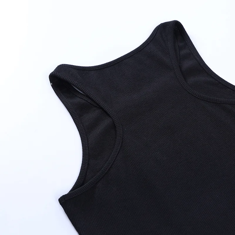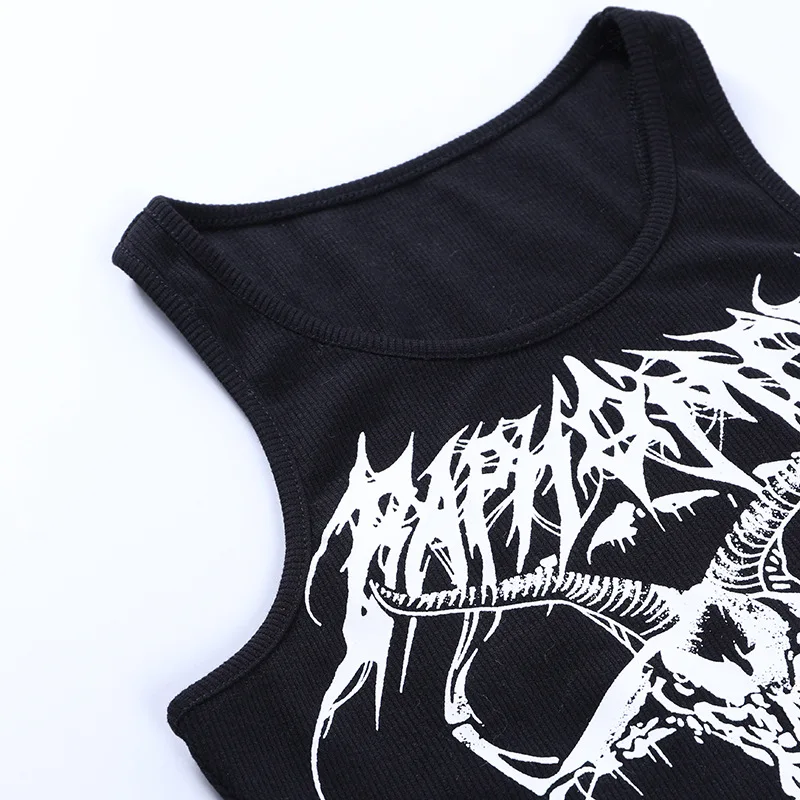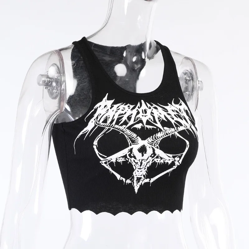 The Gothic Knitted Punk Black Tank Tops Mall Goth Grunge Goat Print Harajuku Women Crop Tops Skinny Sleeveless Streetwear